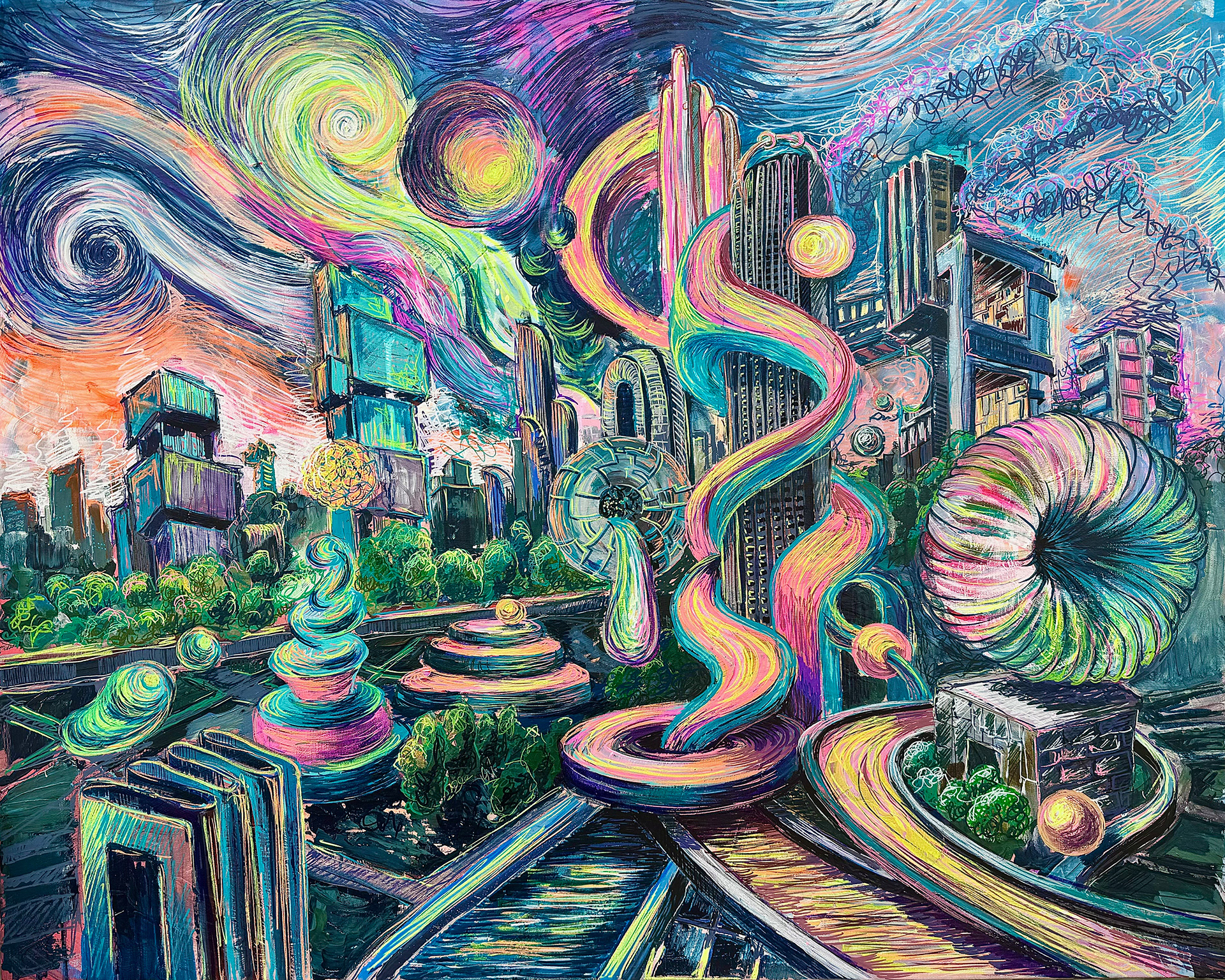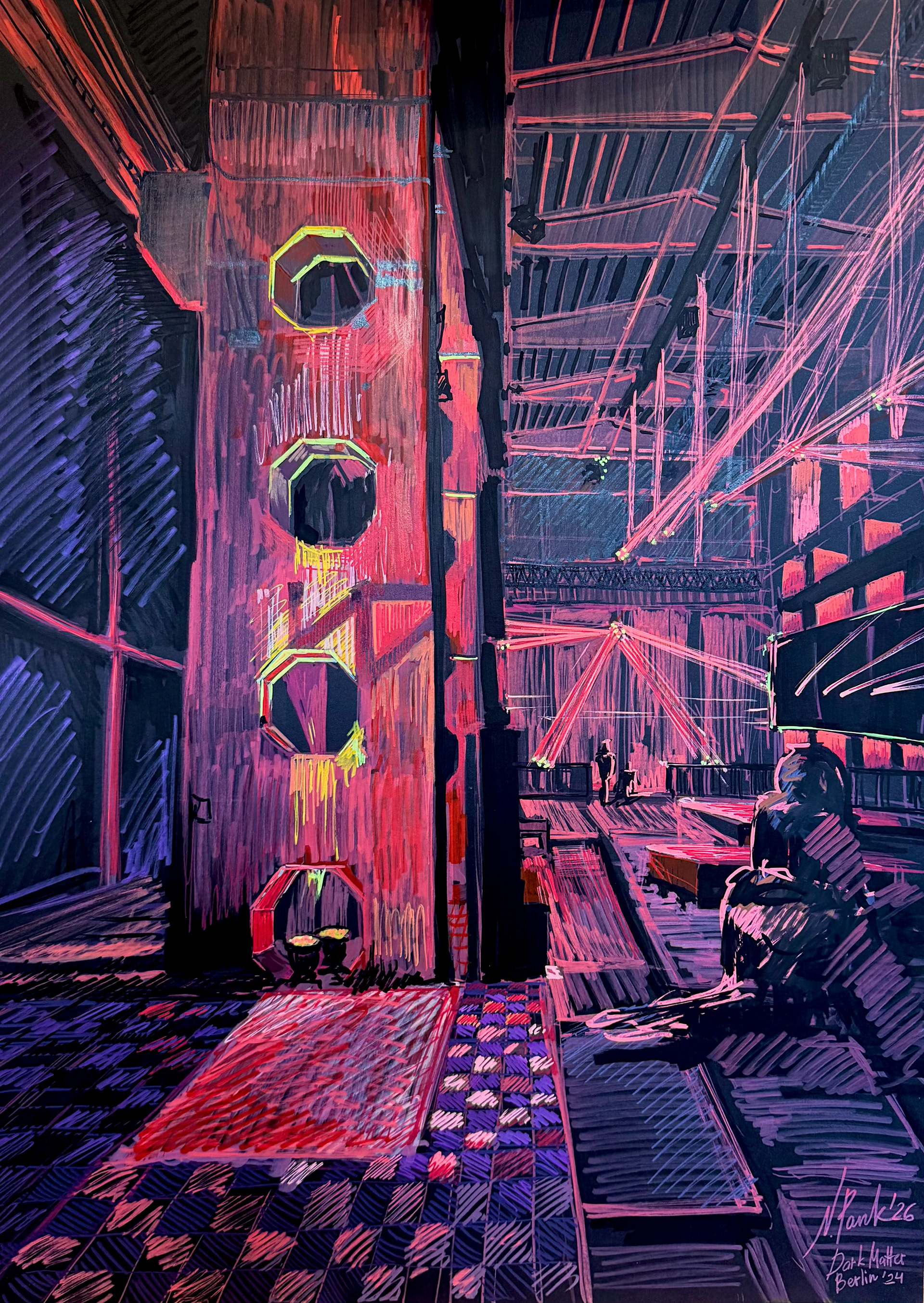 Inner Techno-Dark Matter, 70x50cm, acyl markers, paper, 2026